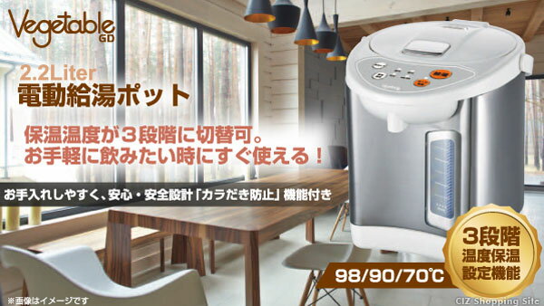 お手軽に飲みたい時にすぐ使える!Vegetable 電動給湯ポット 2.2L GD-UP220※メーカー保証あり。