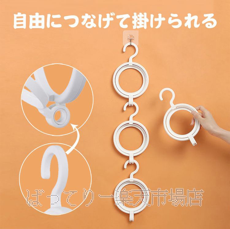【サイズ】 幅13.5×高さ24cm 色:ホワイト 掛けるリング状ハンガーで繋げて自由自在に使えます、 帽子やバッグ、マフラーなどの小物を収納できます。