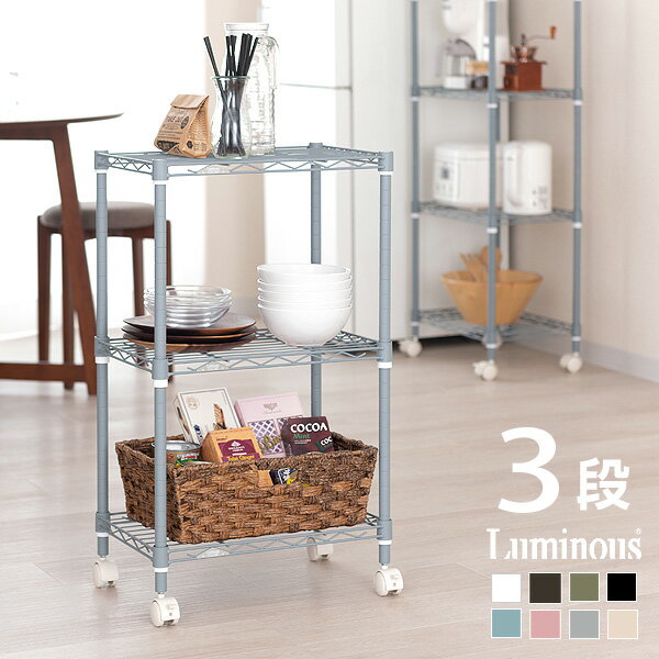 【グレーは2月中旬入荷予定】キッチンラック キャスター付き キッチンワゴン ワゴンラック デスクラック カウンターラック 炊飯器ラック おしゃれ 北欧 棚 3段 2段 ホワイト ブラック ブラウン ブルー カーキ ピンク ベージュ ルミナス カラーラック lcr45-3